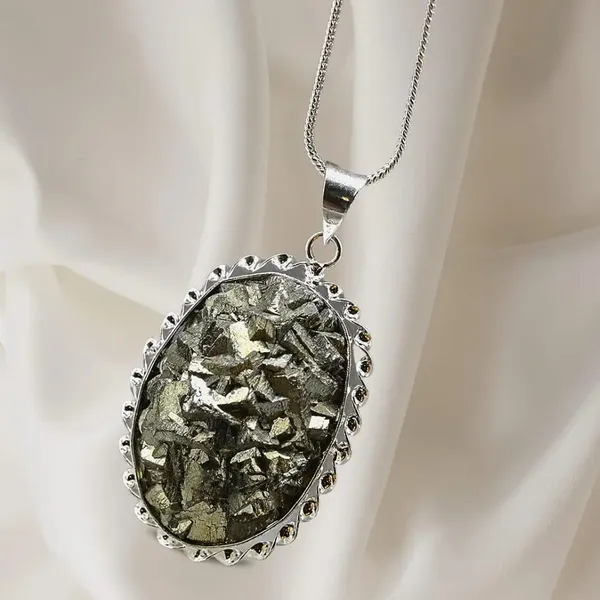 Silver Plated Original Pyrite Stone Pendant Necklace For Men & Women (5-30 ..More